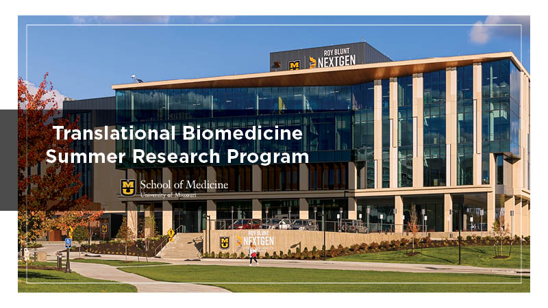 As part of the University of Missouri’s NextGen Precision Health Initiative, the School of Medicine has developed a new Summer Research Program in Translational Biomedicine. This training program seeks to recruit highly motivated and creative young scientists who are interested in developing innovative solutions to difficult problems in biology and medicine. The purpose of this 9-week, full-time summer research program is to provide undergraduates with an intensive interdisciplinary research experience that emphasizes preparation for graduate programs, including our Translational Biosciences PhD.